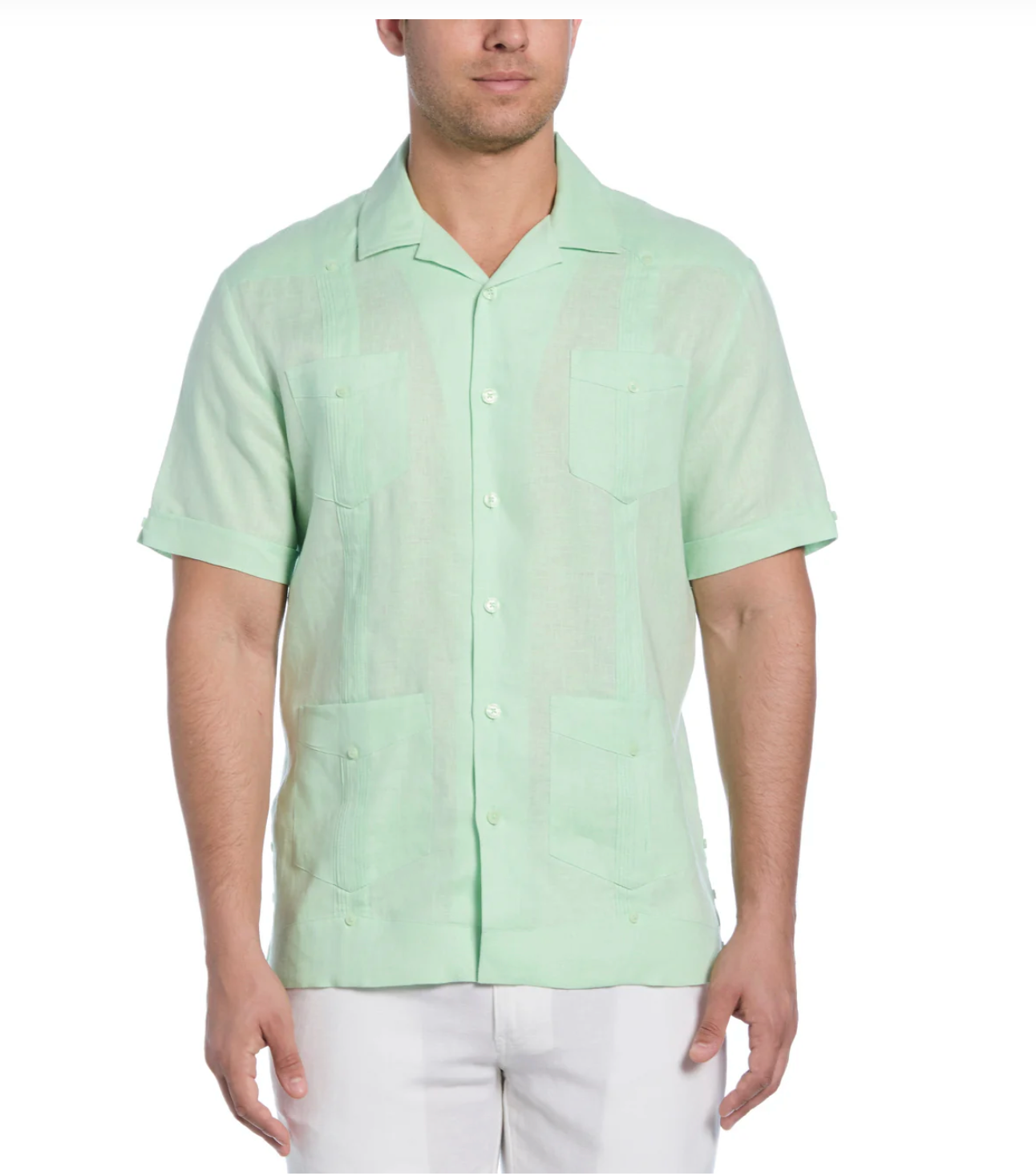 Refresh your effortless basics with this Cubavera men's short sleeve button up shirt. Made from breezy plain weave linen fabric that provides natural lightweight comfort in warmer weather, you'll keep comfortable without sacrificing durability. The retro camp collar adds a laid-back touch, while the vintage-inspired mini pink tucking offers casual style. Featuring a four-pocket design, this men's guayabera top blends traditional details with up-to-date styling that makes dressing a breeze.